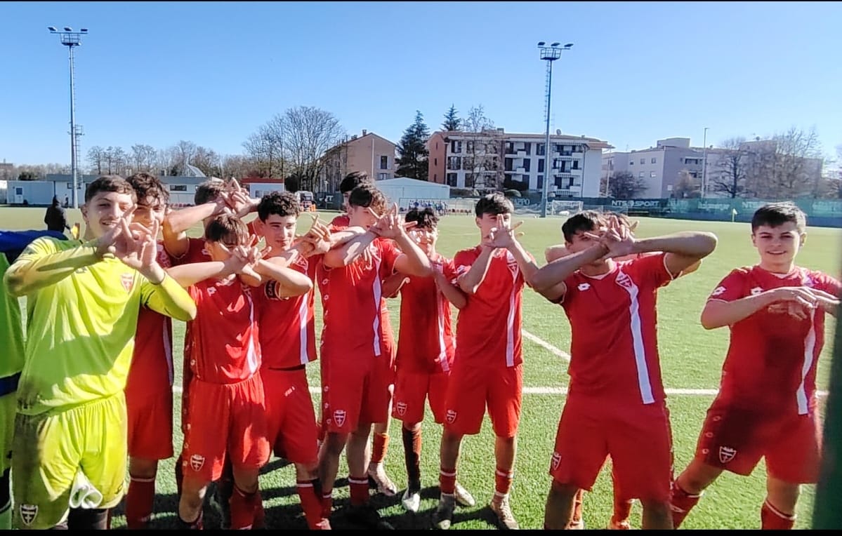 I classe 2012 del Monza che esultano al termine della partita