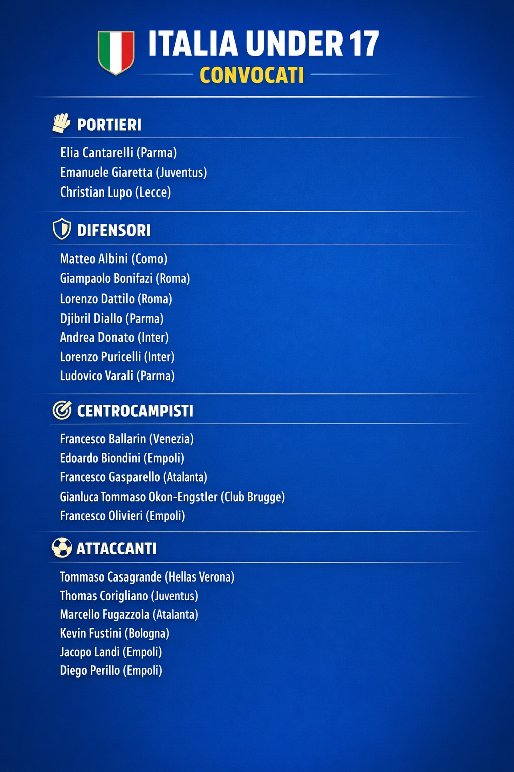 Dopo lo stage e il test con l’Empoli, Daniele Franceschini ha ufficializzato i 21 convocati, inserendo due prospetti classe 2010: il difensore della Roma Lorenzo Dattilo e il centrocampista dell’Empoli Francesco Olivieri. Un segnale chiaro: spazio al merito e al potenziale, anche se in anticipo sull’anagrafe del gruppo (prevalentemente 2009).