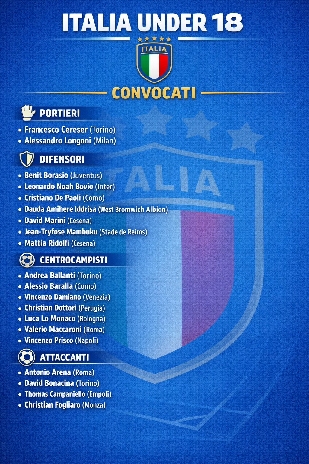 Il “caso” virtuoso di Antonio Arena (Roma, classe 2009): 16 anni, due gol pesanti già nel calcio dei grandi – dallo storico esordio con rete in Serie C (quando vestiva il Pescara, il 7 marzo 2025, a 16 anni e 25 giorni, primo 2009 a segnare tra i pro in Italia) fino al lampo in Coppa Italia con la Roma contro il Torino il 13 gennaio 2026. È un profilo che un CT intelligente usa con misura: strappi, area, attacco del primo palo. In Scozia, anche 20-25 minuti possono ribaltare un match equilibrato. La fisicità moderna di Dauda Amihere Iddrisa (West Bromwich Albion): scuola inglese, radici bresciane, mediano/difensore con passo e timing, già protagonista al Mondiale U17 dove ha persino trovato un gol decisivo. Abituato all’intensità britannica, può essere un riferimento prezioso proprio contro gli scozzesi nel primo test. La linea arretrata tra continuità e competizione interna: nomi come Benit Borasio, Leonardo Noah Bovio, Cristiano De Paoli fotografano bene la varietà del reparto: fisici, profili con esperienza Primavera, qualcuno già proiettato a minuti tra i grandi. Gestire le altezze e le preventive in un torneo su tre gare in sei giorni è il punto nevralgico: qui la scelta di due portieri affidabili (Cereser, Longoni) e di difensori duttili (Bovio, Iddrisa) concede margini di adattamento. In mezzo, l’importanza di parole-chiave come linee di passaggio, riaggressione, densità sulla seconda palla: elementi che Favo ha martellato durante lo stage di Novarello del 16–18 marzo, sfruttando qualità tecniche di profili come Lo Monaco e Maccaroni, giocatori da ultimo terzo in grado di armare il tridente.