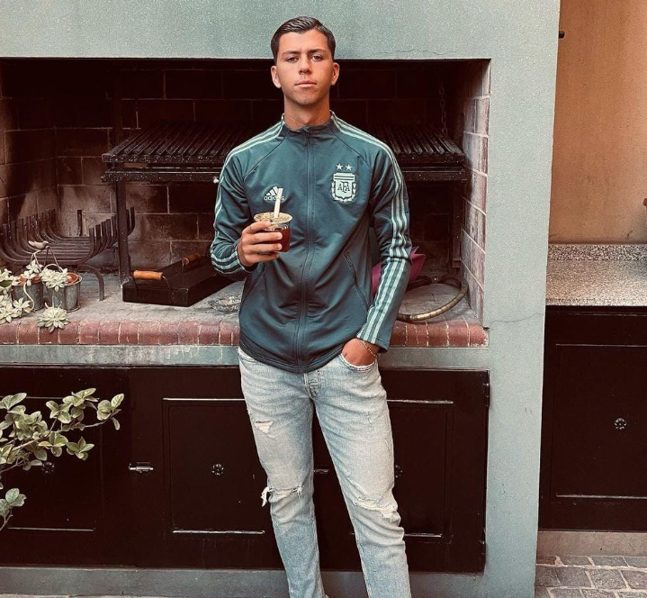 Nicolò Meringolo in versione argentina: mate in mano e sullo sfondo un camino per asado (dal suo profilo Instagram)