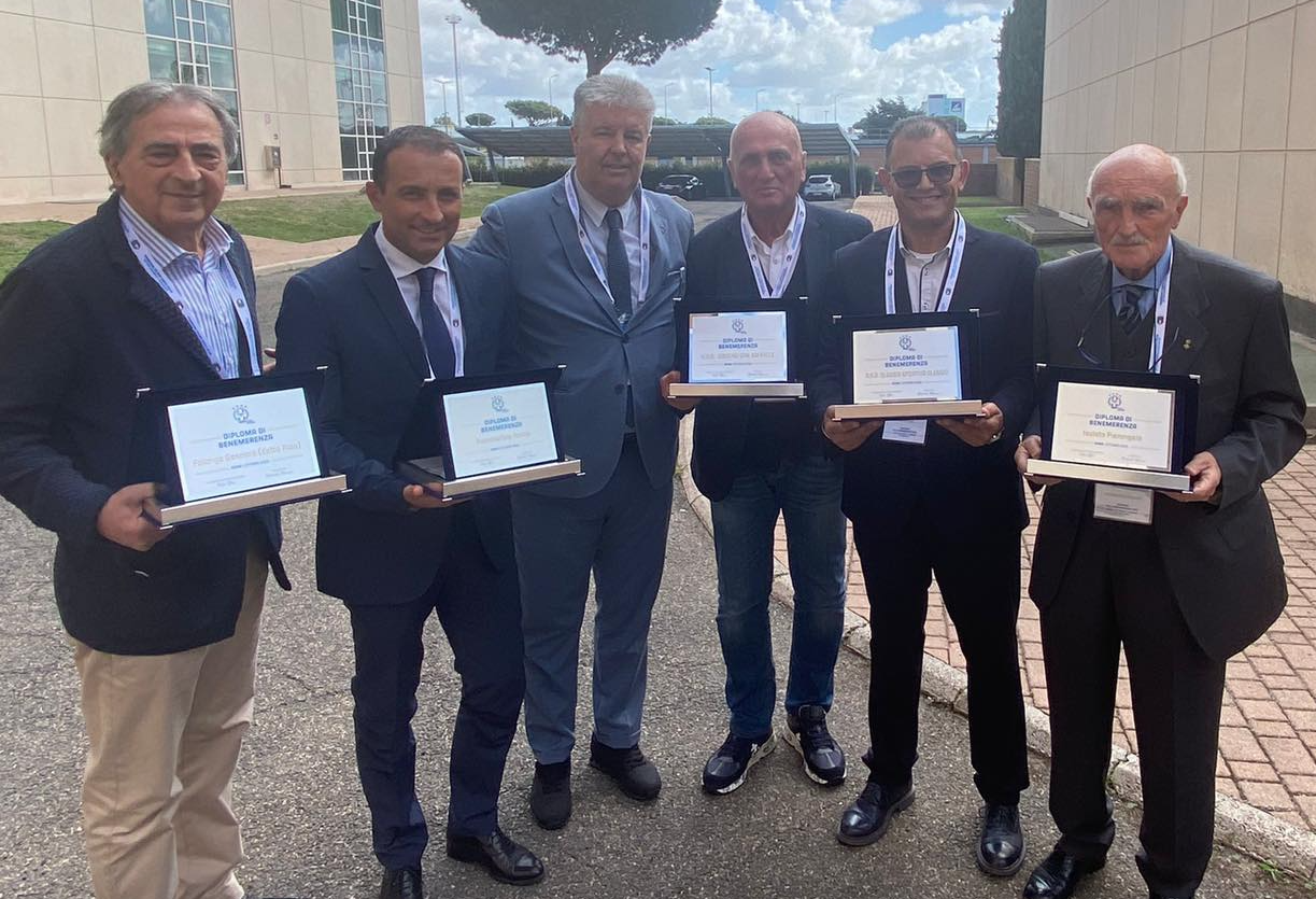 Si è svolta sabato mattina presso l'Hilton Rome Airport di Fiumicino la tradizionale cerimonia delle Benemerenze Sportive della LND e del Settore Giovanile e Scolastico, un evento largamente atteso dal mondo dilettantistico dopo le ultime due edizioni cancellate dalla pandemia. Sono state 277 le onorificenze conferite, su proposta dei Comitati Regionali e della Commissione benemerenze, dai Presidenti di LND, SgS e FIGC Giancarlo Abete, Vito Tisci e Gabriele Gravina: 75 società (di cui 40 al traguardo del centenario, 4 con 75 anni di attività e 31 con mezzo secolo di storia) e 202 dirigenti impegnati sul campo da 40 o 20 anni.
