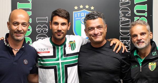Davide Rampinini, colpaccio neroverde, in posa con la dirigenza neroverde