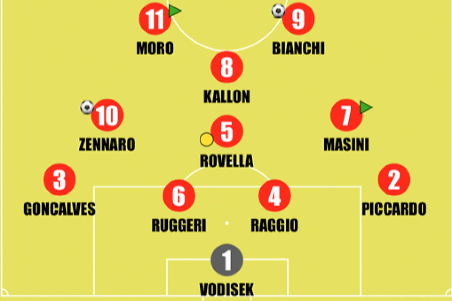 Vezzoni 6 Gara scolastica, deve giocare a tutta fascia quindi non può concentrarsi su una fase ben specifica. Nel primo tempo Goncalves lo fa sudare, ma tutto sommato tiene bene. (