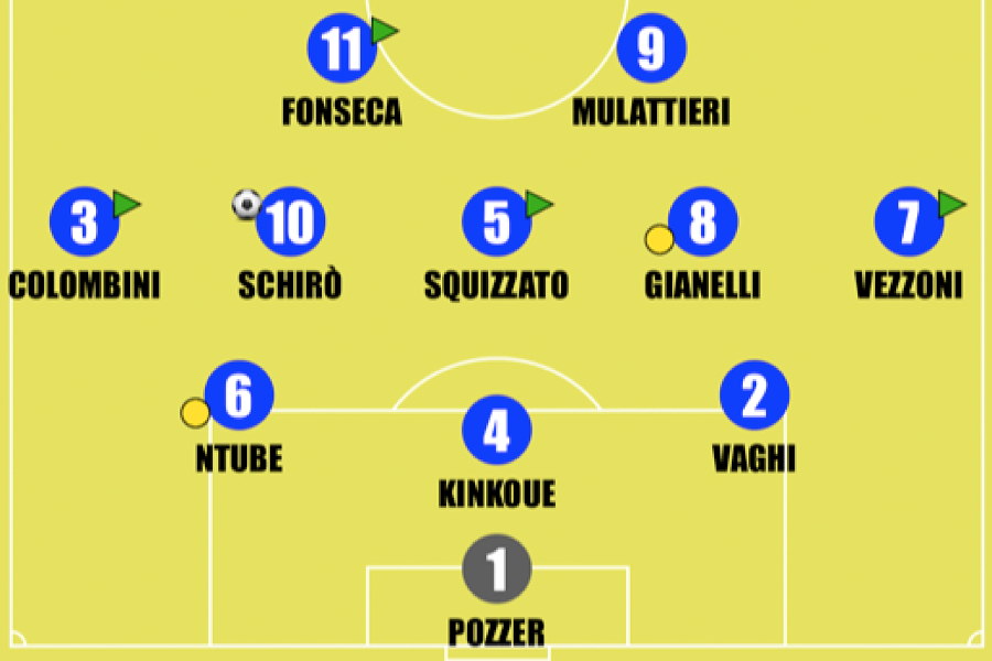 Colombini 7 Il momento di forma continua. Sgasa sulla mancina occupandosi di fare offensiva e difensiva. Apparecchia la giocata per il gol di Schirò nel primo tempo, non è un assist vero e proprio ma è degno di menzione. A inizio ripresa soffre le folate di Piccardo, ma si riprende subito con il tocco per Schirò che vale il 3-1. E stavolta è un assist vero. (