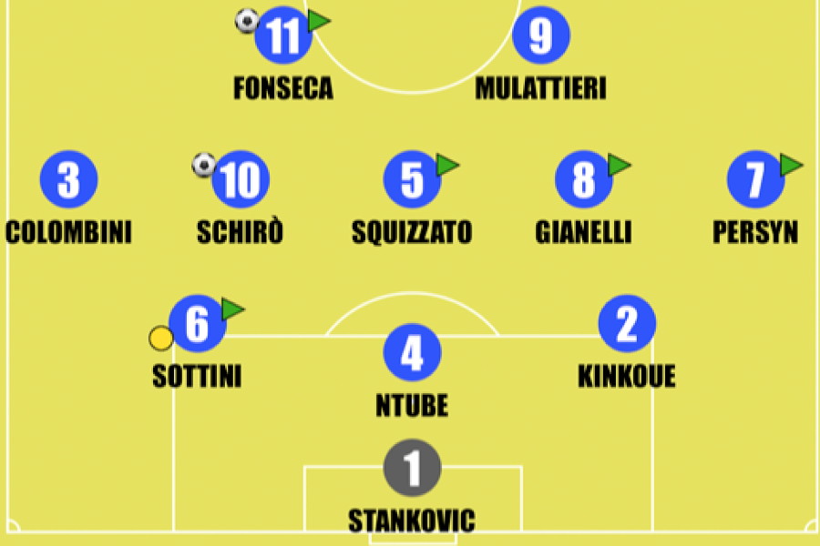 Colombini 7 Un treno sulla sinistra, è ufficialmente la bella sorpresa di questo inizio di stagione. In difesa regge, anche se avrebbe potuto dare un po' più di sostegno a Sottini, ma è in fase offensiva che fa le cose migliori. Suo l'assist per il gol di Fonseca.