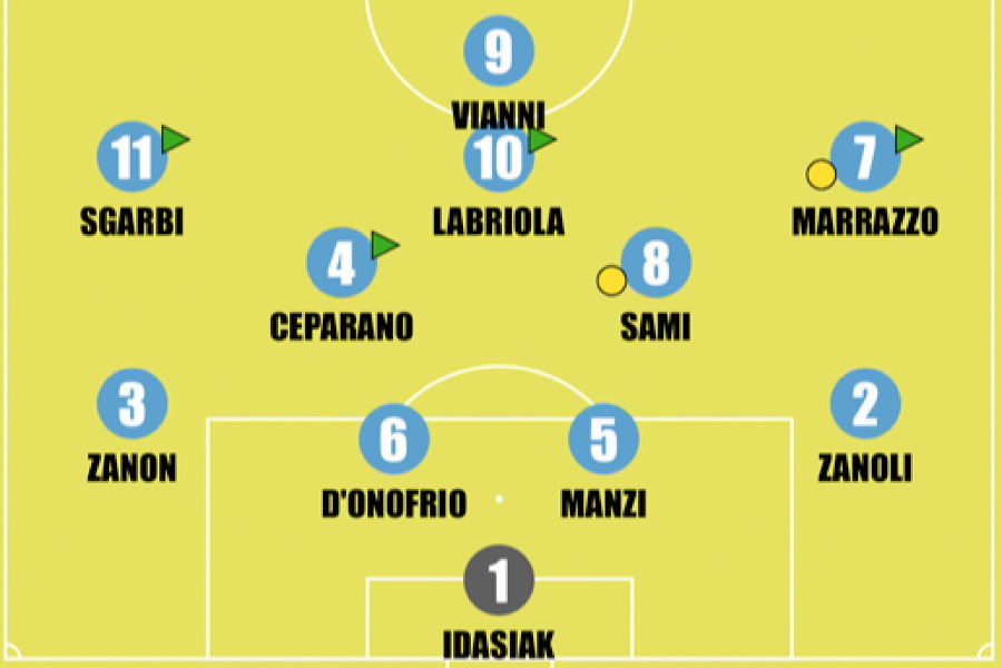 NAPOLI (4-2-3-1): Idasiak 6.5, Zanoli 5.5, Zanon 5.5, Ceparano 5 (27' st Bozhanaj 5.5), Manzi 6.5, D'Onofrio 5.5, Marrazzo 5 (1' st Mamas 5.5), Sami 5.5, Vianni 5.5, Labriola 6 (10' st D'Amato 5.5), Sgarbi 5.5 (10' st Cioffi 7). A disp. Daniele, Tsoungui , Esposito, Virgilio, Cavallo. All. Angelini 5.