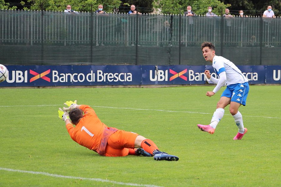 Brescia-Cittadella Primavera 2: il gol di Alberto Barazzetta al 17' della ripresa che porta il Brescia sul 2-1, grande slalom in precedenza.[/caption]