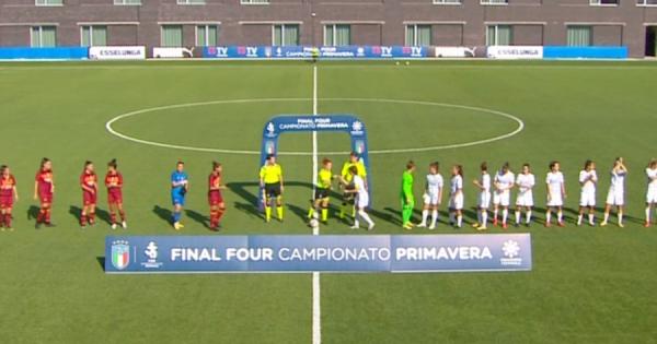 Vantaggio giallorosso. Si affrontano due squadre reduci da un ottimo campionato e da schiaccianti vittorie ai quarti di finale. Da una parte la Roma di Melillo, arrivata capolista nel girone 2 con soli quattro gol subiti in undici partite, dall’altra l’Inter di La Fuente, piazzatosi secondo in classifica con soli tre punti di scarto dalla Juventus ma, per lo meno sulla carta, sfavorito contro le giallorosse. Le romane però, devono fare a meno di Emma Severini, fermata da un infortunio, mentre le nerazzurre possono contare su Anna Catelli, alla prima presenza in Primavera dopo un anno passato in prima squadra. La partita inizia con le ragazze di Melillo subito lanciate offensivamente, soprattutto sulla fascia sinistra, guidate dai cross di Vigliucci e dalle avanzate di Zannini. Proprio da quel lato arriva il primo squillo della partita: al 12' Corelli si ritrova la palla tra i piedi, dopo un rimpallo fortunato, ma spara alto sopra la traversa. La centrocampista classe 2003, però, si rende ancora protagonista, innescando con un magico colpo di tacco Tarantino che, davanti alla porta non spreca. Al 14', dopo un inizio scoppiettante, è già vantaggio giallorosso. Le nerazzurre allora tirano fuori l'orgoglio e tentano una reazione. Al 20' è Poli a provarci al volo ma il suo tiro è murato e successivamente bloccato facilmente da Ghioc. L'occasione più ghiotta per la numero 7 arriva però 5 minuti dopo quando, servita da Pastrenge, si ritrova sola davanti al portiere che la ipnotizza con un'uscita perfetta. La prima frazione si chiude con la Roma che tenta di rallentare il ritmo partita. L'Inter, a parte l'occasione al 42' con un impreciso colpo di testa di Pavan, non riesce a trovare i giusti spazi.