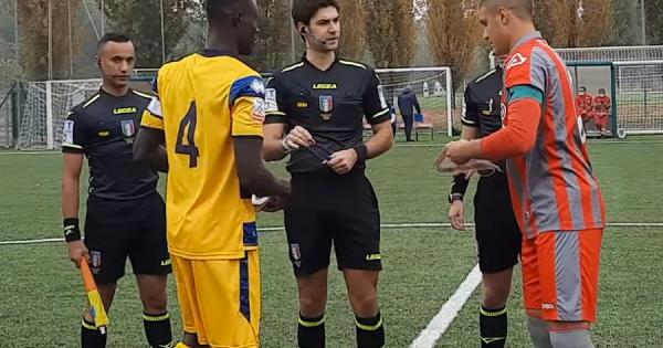 I due capitani agli ordini del direttore di gara Lovison della sezione di Padova (foto parmacalcio1913.com)