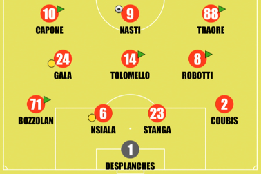 AMMONITI: Gala (M), Nsiala (M), Di Bartolo (R), Tahirovic (R), Faticanti (R).