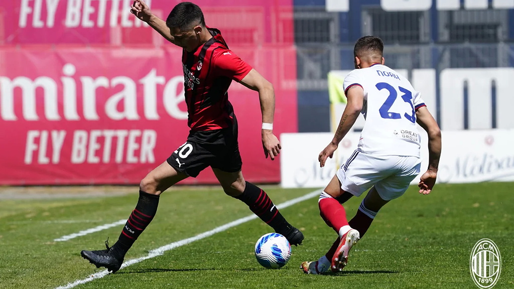 Marko Lazetic, centravanti classe 2004 preso dal Milan nel mercato invernale: contro il Cagliari la sua "prima" da titolare in rossonero (foto credit acmilan.com)