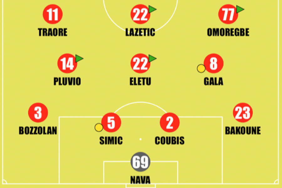 Il 4-3-3 di Ignazio Abate: ben 6 cambi rispetto alla trasferta in Youth League contro il Chelsea. In difesa torna Coubis e al suo fianco viene confermato Simic al posto di Paloschi, Bozzolan si riprende la mancina, a centrocampo Pluvio per Zeroli e Gala che ritrova il posto con Marshage che torna in panchina, davanti fuori El HIlali e Mangiameli e dentro Omoregbe e Lazovic con Traore a completare il tridente