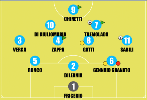 AMMONITI: Gatti (C), Gennaio Granato (C), Sahitaj (P), Basili (P).