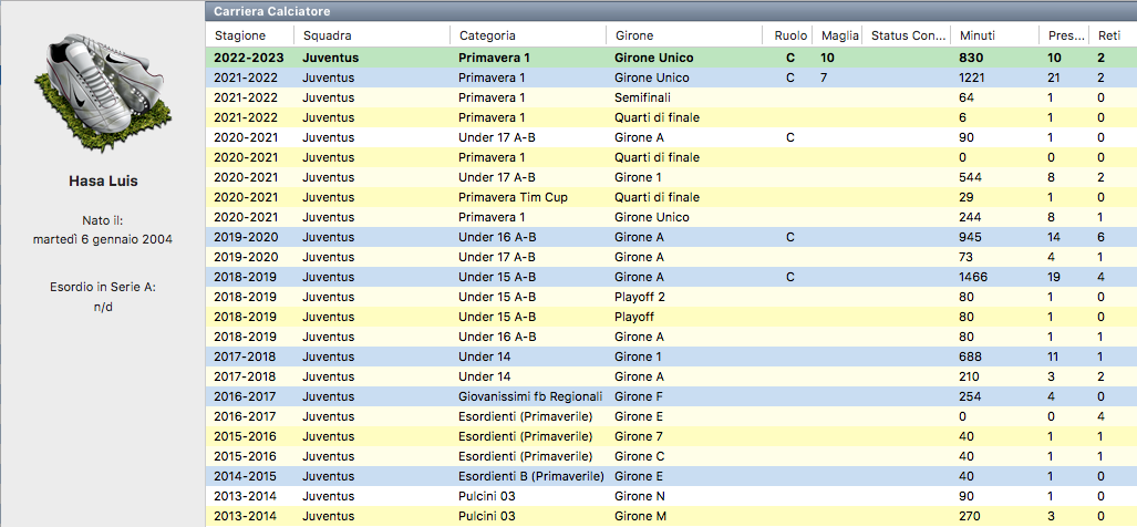 La carriera e il percorso da quando era Pulcino di Luis Hasa, nei vari campionati, dai Pulcini alla Primavera