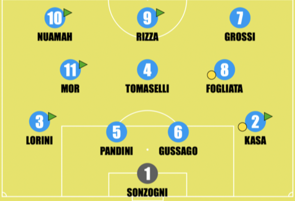 Fogliata 5.5 Quando si accende lui, si accende la squadra. L'unico problema è che la sua lampadina si accende troppo ad intermittenza, ed i momenti di buio hanno la meglio su quelli di luce. Il suo tap in che si infrange sulla traversa è il colpo del ko per il Brescia.