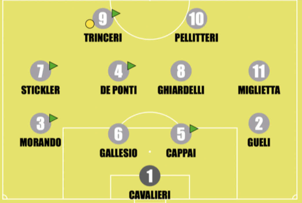 All. Fiorin 7 La sua squadra gioca molto corta, compatta e non subisce quasi mai. Lascia grande libertà ai suoi fantasisti davanti e questa scelta si rivela un arma decisiva per i tre punti.