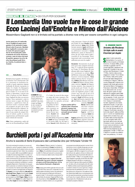 Partiamo da un quesito: chi ferma il Lombardia Uno? Esattamente 365 fa ci ponemmo la medesima domanda, al quale seguirono risposte furibonde di Alcione (campione in Under 14 e Under 15), Brusaporto (vittoriosa in Under 16) e Virtus (regina in Under 17). A un anno di distanza ci riproviamo e ancora una volta ci basiamo sui fatti: Massimiliano Gagliardi ha fatto un mercato stellare. Sono tantissimi i colpi in entrata messi a segno dal diesse rossonero, i quali hanno fatto dimenticare anche i numerosi addii: chi accasatosi nei prof, chi in altre realtà dilettantistiche milanesi. Insomma, se i colpi in uscita raccontano di una società da sempre fabbrica di talenti, quelli in entrata rappresentano perfettamente quale sia la volontà dei rossoneri.