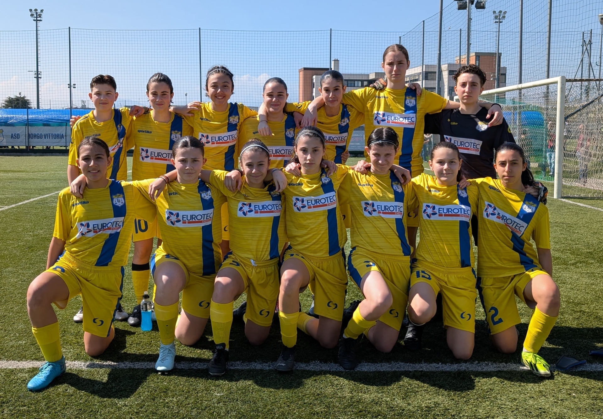 BORGO VITTORIA (3-2-3): Petralia 7, Rosato 6.5 (13’ tt Merlo 8), Virzi 7, Di Bello 6.5, Bonomi 6.5, Catallo 7, Piroddi 8 (26’ st Pecoraro 6.5), Cristofoli 6.5 (1’ tt Traina 6), Monetta 6.5 (1’ tt Perrone 6); All. Dani 6.5