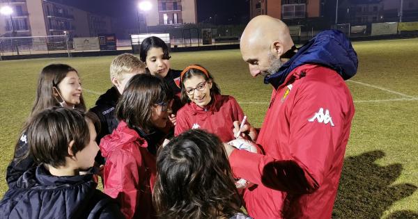 Il Responsabile Franco Lucido autografa un pallone per le piccole giocatrici del Salsasio