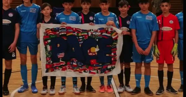 Gli Esordienti 2009 del Lucento sul campo del Sermig con un messaggio per la pace nel prepartita