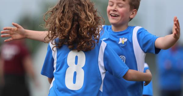 Matteo Cavazzini e Patrik Gjoka del CUS Torino festegiano uno dei gol nella spettacolare partita di Pulcini 2012 con il Rangers Savonera
