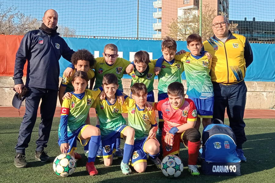 Entrambi ancora ferme a zero punti, scendono in campo i ragazzi di Corso Appio Claudio allenati da Vito Cinquepalmi e i grigiorossoblù di Paolo Novara per tentare di accaparrarsi la prima vittoria primaverile. Il match inizia subito forte con il primo tiro da parte dei padroncini di casa. A tentare la giocata è Lorenzo Trisorio, che si rivelerà uno dei migliori in campo per i suoi. Nel frattempo anche Riyad Taouri si fa notare per delle ottime giocate a centrocampo ed un buon dribbling. Al 5' arriva anche il primo tiro da parte della squadra ospite, ma qui è notevole l'estremo difensore di casa, che salva tutto con un'ottima parata. Al 7' arriva anche il primo gol del match. La firma se la prende tutta Noemi Parrimuto, che apre eccellentemente le danze andando a tutta fascia e non lasciandosi intimorire dalla difesa avversaria una volta arrivata sotto porta. Continua a dare spettacolo, nel frattempo, Trisorio, che si fa notare anche per l'ottima fase difensiva e per il buon recupero palloni. Poco dopo è tempo di un altro tiro in porta per i ragazzi del Carrara. L'autore è nuovamente Parrimuto, fermata però dal super portiere grigiorossoblù.