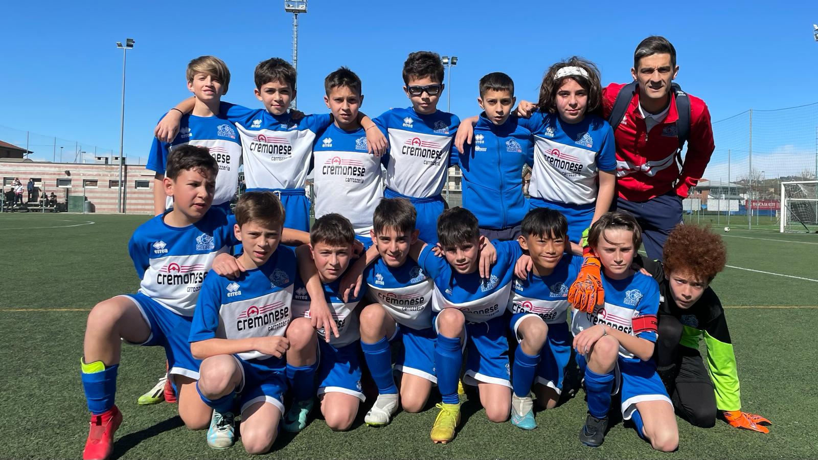 Primo tempo buono per i leoncini biancoblù che si fanno sentire. Da sottolineare le buone prestazioni di Thomas Melega e Andrea Ruta che sembrano poter presagire una partita migliore per i ragazzi di Francesco Abbondanza. Il Santena 2014 fatica leggermente nei primi minuti ma tutto cambia con l’inizio della seconda parte di gara.