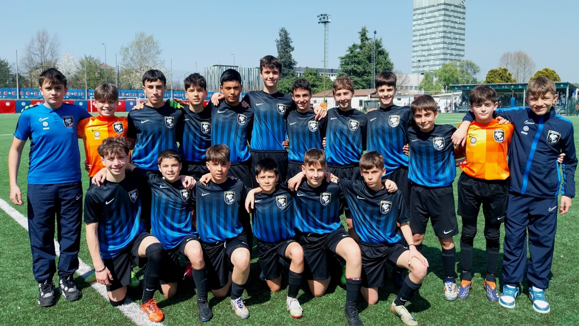 Fischio d'inizio, palla al centro e primo tocco dell'Enotria. I ragazzi di Salogni aprono subito sulla fascia sinistra, controlla Riccardo Torta. Punta l'uomo, lo salta, ne salta un altro. Sembra intestardirsi, ma passa, sbuca sulla linea di fondo e riesce a crossare. Tra le maglie nerazzurre spunta la 11 di Alessandro Principe che dopo neppure un minuto sblocca la gara con un inserimento perfetto. Un avvio che spezza le gambe agli ospiti, che soffrono i primi dieci minuti come forse non avevano preventivato. Prima la traversa blocca il raddoppio, poi un gol annullato per un cross avvenuto oltre la linea di fondo su ennesimo inserimento di Principe. Passano i primi dieci minuti e l'Accademia riesce a rimanere in gara, crescendo lentamente. Intorno al 18' arriva il primo squillo, ci prova capitan D'Acunti ma la palla finisce alta. Dopo appena un minuto punizione sulla trequarti affidata sempre al numero 8, che disegna una parabola perfetta sul secondo palo e trova il destro coordinatissimo di Mobrici: è la fine del primo tempo e arriva il pareggio. La ripresa inizia su ritmi frenetici, con occasione da una parte all'altra. Siamo intorno al quarto minuto quando Paccanelli strappa a centrocampo e trova in area Ghiringhelli, che incrocia e trova la rete del 2 a 1. L'atmosfera si scalda, sugli spalti i genitori caricano i ragazzi, e i duelli a centrocampo si fanno sempre più intensi. L'Enotria fa fatica a trovare l'imbucata giusta, e si rende pericolosa sui calci piazzati.