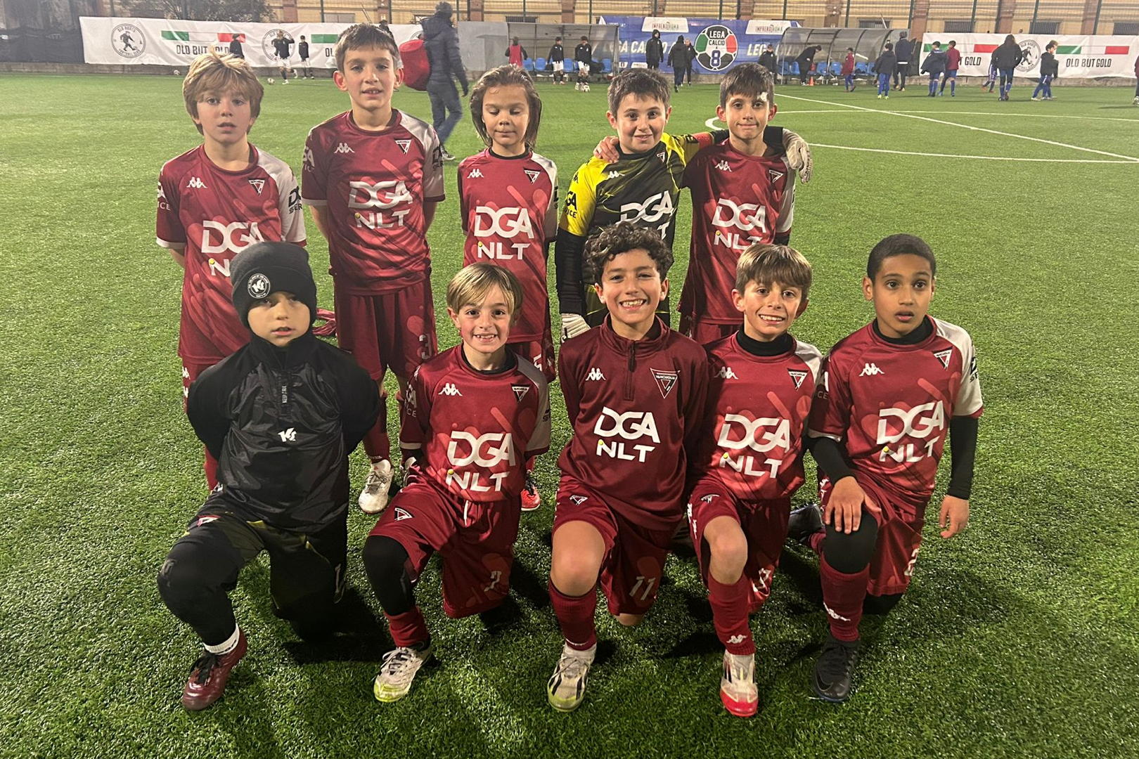 Primo tempo che si accende dal primo minuto quando una bella azione dei ragazzi granata sblocca il match già al primo minuto: il vicecapitano Giacomo Berrino spedisce in porta un tiro forte e preciso che spiazza il portiere avversario. Il Vanchiglia entra molto bene in campo e, incoraggiati dal vantaggio appena stabilito, i ragazzi si mettono in mostra tenendo bene palla; Wassim Maftouhi è bravissimo ad impostare l’azione dalle retrovie, salendo bene con un corsa veloce in mezzo al campo e realizzando dei bellissimi uno due con i compagni in attacco, i numeri 8 e 9, Giulio Cozzarella e Niccolo Calciano, che si prendono le luci dei riflettori con dei tentativi di tiro forti e, addirittura, in rovesciata che, però, finiscono di poco fuori. I padroni di casa, nonostante lo shock della rete subita nei primi 60 secondi di gioco, non sembrano scomporsi; sulla fascia dominano la presenza e la personalità del capitano Leonardo Ghiringhelli che collabora bene con Abdalla Omar Tamer Metw, la cui corsa propizia ottime iniziative in avanti e la cui audacia lo premia: al 7’, infatti, spedisce in rete il pallone approfittando di una respinta sbagliata della difesa avversaria. I ragazzi granata continuano a tenere bene il passo, soprattutto grazie al buon lavoro di Giacomo Berrino che, in mezzo al campo, salta tutti e, con una magia, riesce anche ad arrivare al tiro che, però, finisce fuori. Gli ultimi 2’ di questi primo tempo si rivelano essere i più caldi: al 13’ Piero Alessio Alfano, in maglia blu, parte da dietro e corre in solitaria fino all’area avversaria insaccando un pallone forte e preciso; dall’altra parte la replica e quasi immediata: una bella iniziativa di Niccolo Calciano viene concretizzata da lui stesso nel gol del 2-2 segnato proprio al 15’.