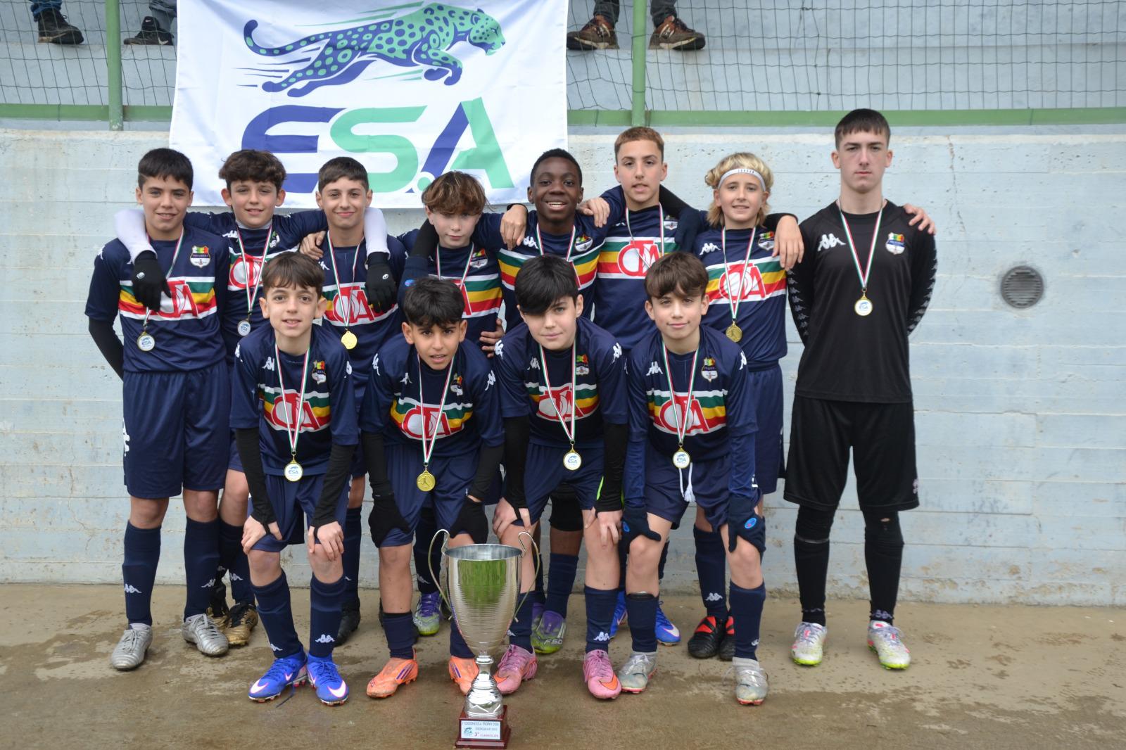 «ll palcoscenico della ES.A Trophy è stato orgoglioso di aver assistito a questo spettacolo. Cari esordienti, al vostro ultimo anno di scuola calcio, avete dimostrato di aver pienamente raggiunto gli obiettivi del rispetto e della condivisione. Siete scesi in campo dimostrando di saper cosa significa: cercare il compagno per condividere gioie e dolori, Battere il cinque durante la sostituzione, saper entrare in campo con rispetto dell' avversario, radunarsi a inizio partita per condividere insieme un momento magico..che nessuno vi potrà mai togliere, insieme, vicini vicini, con il che aumenta i battiti, è il momento dell'urlo di incitamento, saper stare in panchina, con gli occ che sostengono il coraggio dei compagni in campo, riscaldarsi insieme, sapendo che anche quello è un modo speciale per stare insieme, bisbigliare al compagno..perché insieme siamo più forti!».