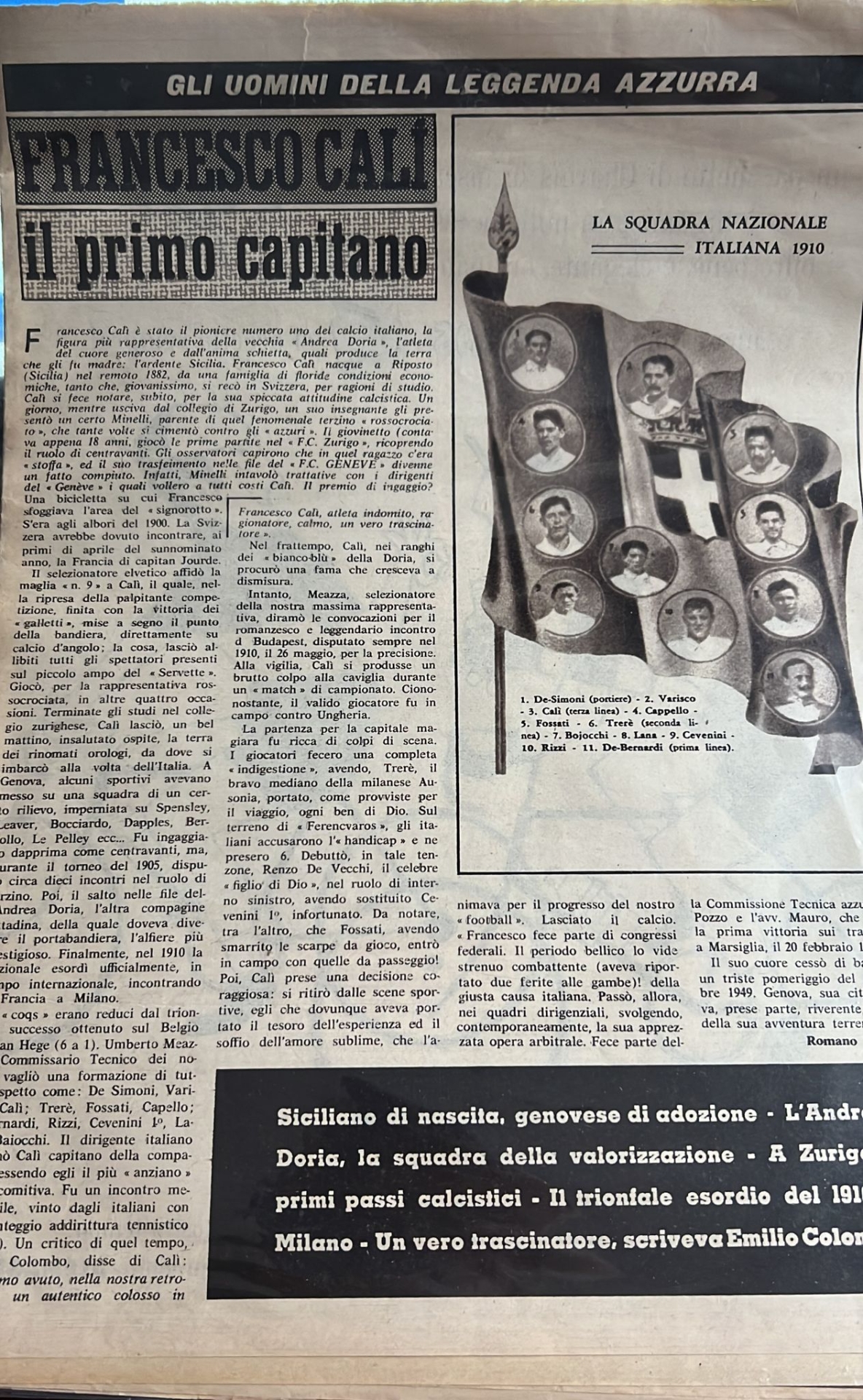 Claudio Calì non ha centrato, nonostante l'ottima terza piazza finale, i playoff col Giussano, ma si è tolto la soddisfazione di issarsi sul trono dei bomber, grazie alla dozzina di reti valsa il +1 sul compagno di squadra Santagada, su Cima (Vedano) e su Fichera (Centro Sportivo Villanova). Ma la sua storia, la nostra storia ha inizio molti anni fa, agli albori del calcio italiano, perché un avo di Claudio è uno dei pionieri dello Stivale a forma di pallone.