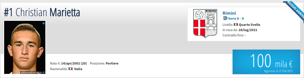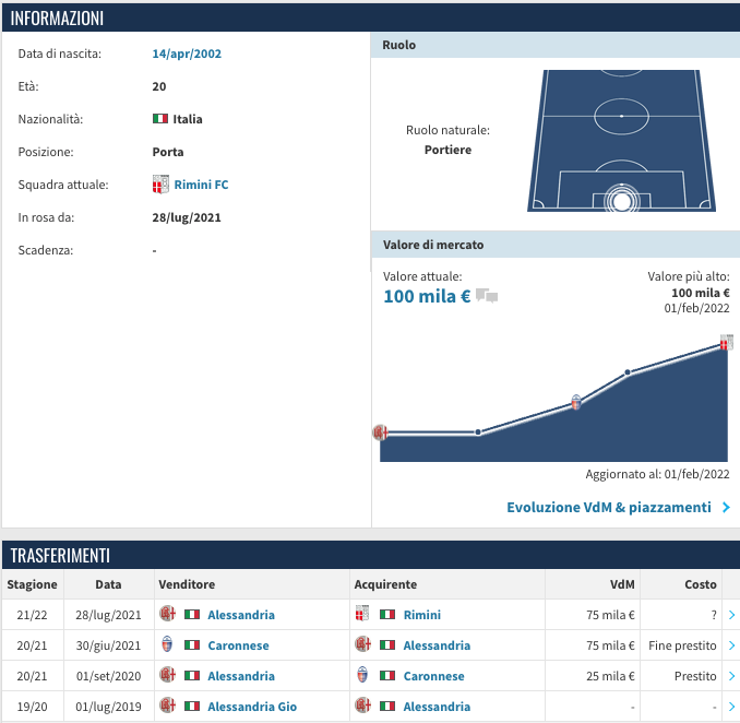 Più porte inviolate in un solo campionato che anni di età anagrafica sulla carta d’identità, con la ciliegina della conquista della Serie C da parte del Rimini e lo sbarco nel calcio professionistico per il giovane partito da Ciriè, alle porte di Torino, e ora alla conquista di un nuovo orizzonte e alle porte del paradiso del calcio professionistico e in corsa, col suo Rimini, per il Titolo di Campione d’Italia della categoria. Per l’ennesimo sogno da trasformare in realtà. Per un’altra parata speciale.