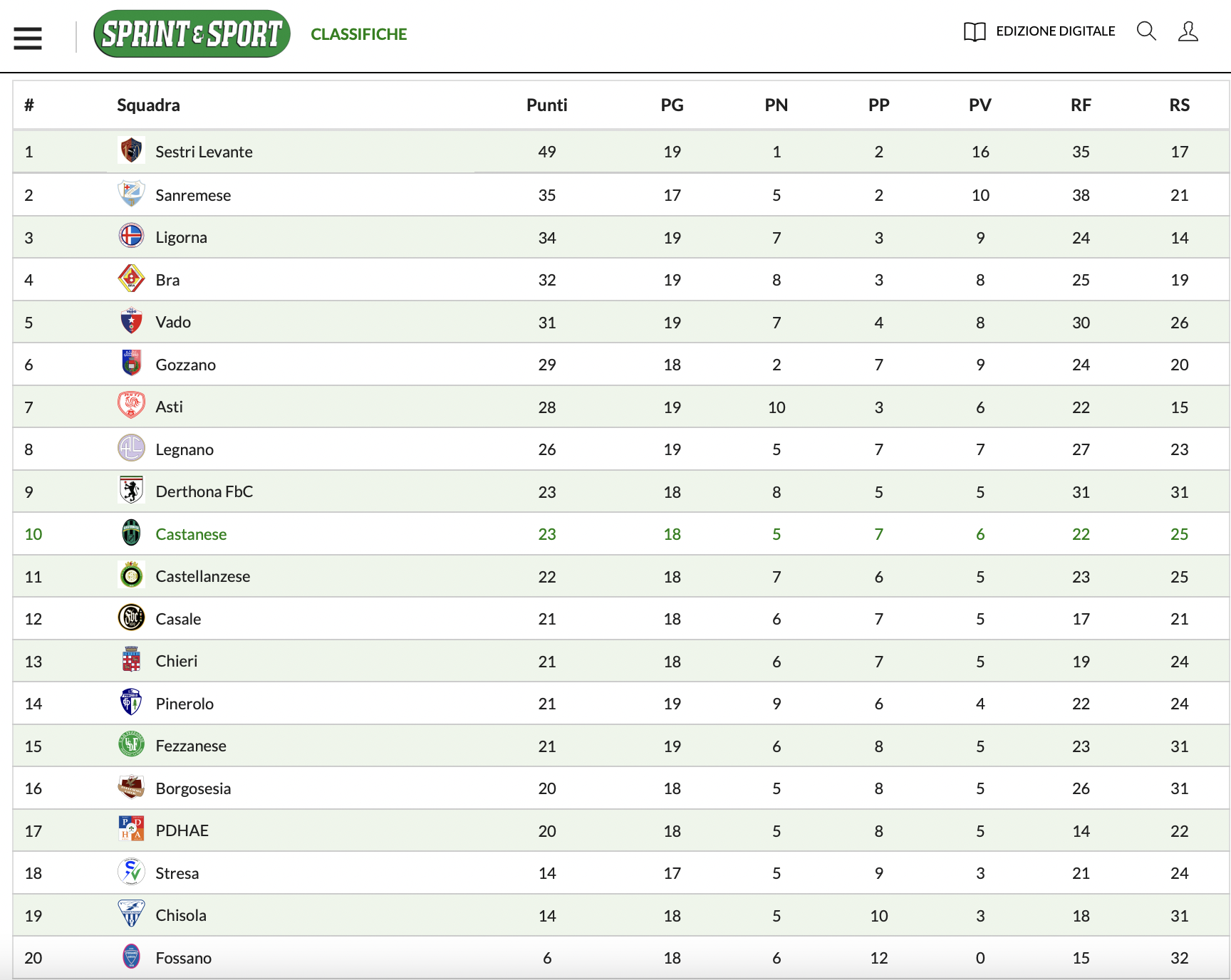 Lotta salvezza che diventa la vera ‘giungla’. Sono infatti ben 11 le squadre racchiuse in 9 punti: dalla 9ª posizione del Derthona a quota 23 punti, alla coppia Stresa-Chisola (con lo Stresa con due gare da recuperare e il Chisola una) a quota 14 punti. Una corsa e rincorsa che ogni settimana vede qualcuna delle protagoniste fare il botto. Come è stato per il Borgosesia di Lunardon. Che ha rifilato un 3-0 alla super-capolista Sestri Levante, imbattuta da 17 partite e che aveva perso solamente la gara all’esordio con la Sanremese! Segnali importanti per la squadra di Lunardon che con gli innesti mirati e un organico ritrovato, sembra poter tornare ad essere quella formazione capace di battere chiunque.
