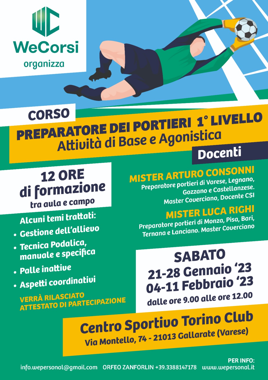 Esatto, perché WePersonal dedica tantissima attenzione anche i portieri. Per questo motivo, tramite la sezione dedicata alla formazione nel mondo del calcio WeCorsi, ecco l'arrivo del corso di formazione per i preparatori dei portieri di 1° livello, per l'attività di base e l'agonistica. Le lezioni, al termine delle quali verrà rilasciato un attestato di partecipazione, si terranno di sabato 21 e 28 gennaio e 4 e 11 febbraio 2023. In totale saranno 12 ore di formazione - tra aula e campo - in cui si tratteranno temi come la gestione dell'allievo, la tecnica manuale e specifica, la gestione delle palle inattive e ovviamente anche gli aspetti coordinativi.