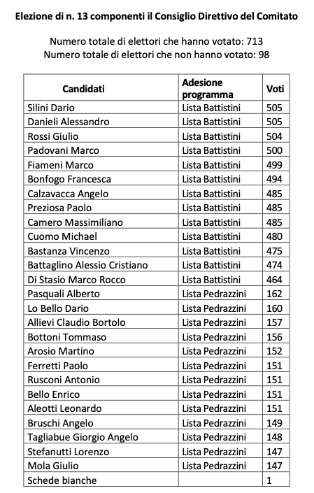 Se nell'assemblea di settembre era stato un testa a testa questa volta non ci sono dubbi su chi ha vinto e chi ha perso, il verdetto è inequivocabile, ma se nella passata tornata si era salvato Martino Arosio questa volta non ci sono dubbi che il passato governo regionale è stato bocciato (il più votato Alberto Pasquali e questo la dice lunga), ma questa volta senza appello. Tutti a casa e nessuno sentirà la vostra mancanza.