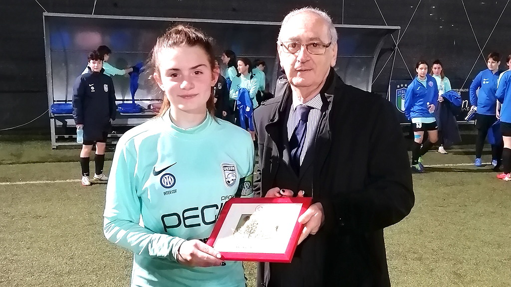 La partita è già in ghiaccio, ma le Bergamasche di Mauro Predari saranno brave a compattarsi e a mantenere un risultato comunque più che onorevole contro la corazzata nerazzurra, grazie anche all'ottima prestazione in difesa di Emma Battistini, che a fine partita ritira la targa celebrativa dal responsabile del calcio femminile Lombardo, Luciano Gandini.