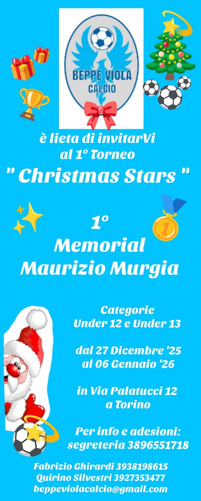 Un torneo che è già un evento. Un torneo che sarà una vera grande festa. Un torneo molto speciale quello che sta per ‘vedere la luce delle stelle’ in via Palatucci, con la prima edizione del Christmas Stars Memorial Maurizio Murgia, dedicato alle categorie 2013 e 2014, U12 e U13, che si terrà dal 27 dicembre al 6 gennaio!