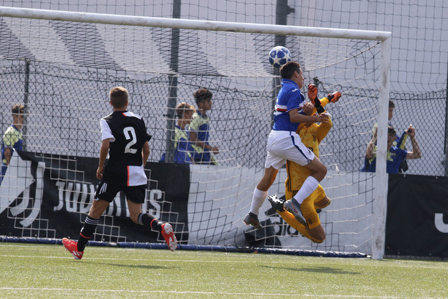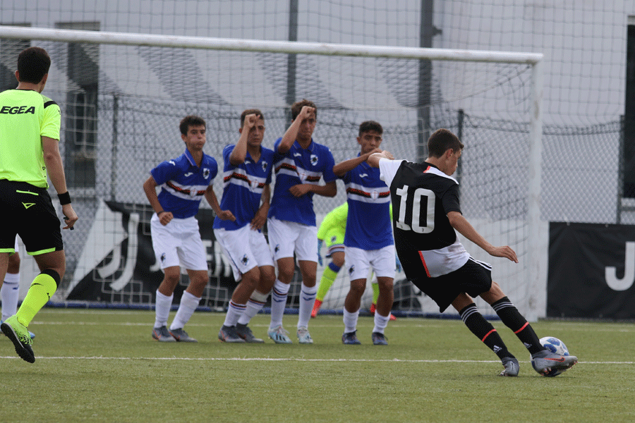 Juventus-Sampdoria Under 15 - Inizio di match aggressivo da parte dei Liguri che non tolgono mai la gamba dimostrando consapevolezza nei propri mezzi e furore agonistico. Tutto ciò si tramuta in due grandi chance in quindici minuti per la Sampdoria, entrambe nate dai piedi di Leone con la prima a lato alla sinistra del portiere mentre la seconda infranta sul palo dalla parte opposta. Sono proprio i blucerchiati a sbloccarla al minuto venticinque in virtù del colpo di testa vincente di Leonardi che beffa l'uscita di Fuscaldo. Pochi minuti dopo Leone si inventa il gol della domenica con un destro da posizione impensabile: è la quinta marcatura stagionale del gioiellino classe 2005 che vale il raddoppio per la sua squadra. Alla mezz'ora la Juventus riduce lo scarto con la conclusione fulminea ad incorciare di Vacca, bravo a spostarsi la palla alla sua destra per colpire sul palo più lontano. La risposta avversaria non tarda ad arrivare con lo stacco aereo di Manè due minuti dopo su calcio d'angolo, Fuscaldo sfiora il miracolo ma il colpo di testa da distanza ravvicinata del numero cinque è troppo potente per essere respinto fuori dallo specchio della porta. Al secondo minuto di recupero della prima frazione Fuscaldo viene espulso per chiara occasione da gol, un intervento scomposto su Conte che regala l'ultima azione pericolosa alla Sampdoria con Leone che calcia a effetto la punizione ma Cavallero, appena entrato al posto di Ghibaudo per sostituire il portiere mandato sotto la doccia dall'arbitro El Yousfi di Vercelli, risponde presente.