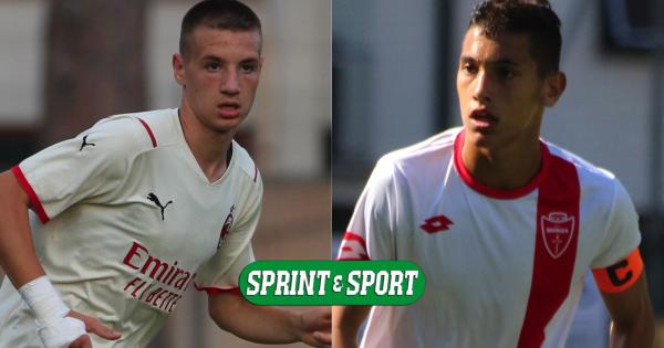 Italia Under 15: a sinistra Francesco Camarda, bomber del Milan e subito in gol con la casacca Azzurra; a destra Nicolò Ballabio, capitano del Monza