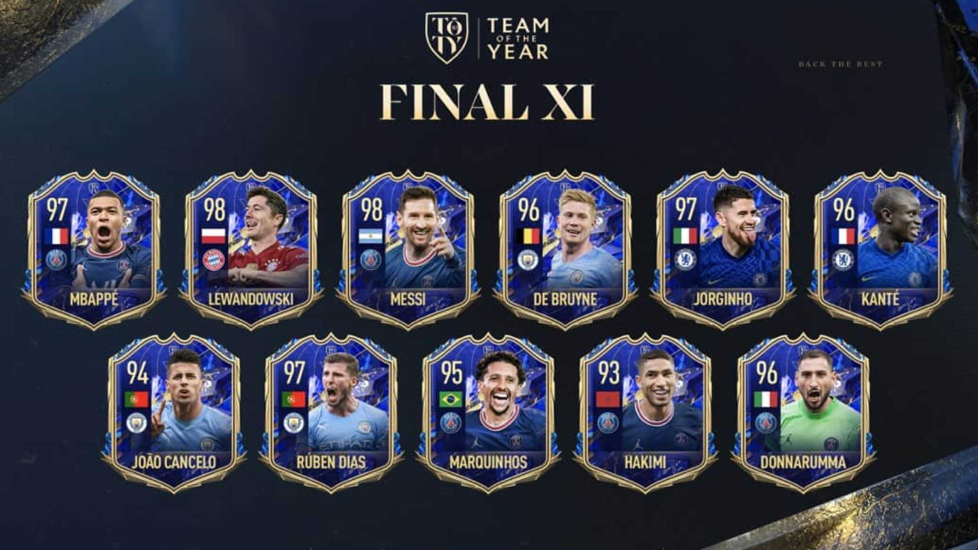 L'undici scelto da FIFA 22 e dalla propria community come Team of the Year: il dodicesimo scelto è stato Cristiano Ronaldo