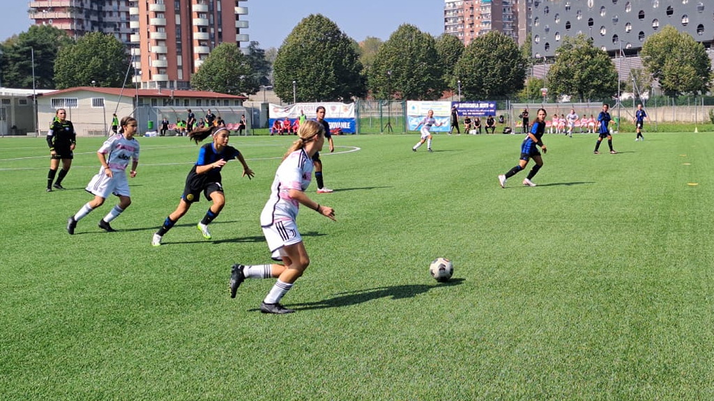 Juve che mostra subito un bel piglio a Sesto San Giovanni, sbloccando il risultato dopo soli otto minuti con una giocata da grande calcio. Abbondanza controlla palla sulla trequarti e scocca un tiro violento e dalla traiettoria insidiosa. Il riflesso di Ferraro è eccellente, ma sulla respinta si avventa Marta Grigolo, implacabile nel buttarla dentro. Le ragazze di Vood controllano il gioco occupando bene il campo grazie al lavoro a tutta fascia di Abbondanza da una parte e Bavosio dall'altra, e al 17' è già 2-0. Da una mezz'ala all'altra, questa volta è Oliva a prodursi in un affondo personale finalizzato con un diagonale vincente. L'Inter prova a scuotersi, Ciurleo è apprezzabile nel tentativo di spezzare la manovra provando a ripartire, ma c'è troppa Juve in campo; troppa Grigolo, che si mette in proprio, vola in porta lasciando sul posto un'avversaria e piazza in rete il 3-0. La 8 è scatenata: sua infatti anche la giocata che propizia il calcio di punizione del 25', scaraventato in gol dal piede di Sabrina Campi.