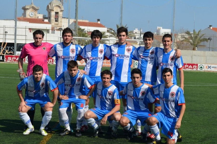 [caption id="attachment_246437" align="aligncenter" width="900"] Una formazione dell'UE Alcudia nella quale Perello ha militato. Lui è il portiere con la divisa rosa e l'equipo si prepara ad affrontare il CD Minorca, squadra isolana di Minorca.[/caption]
