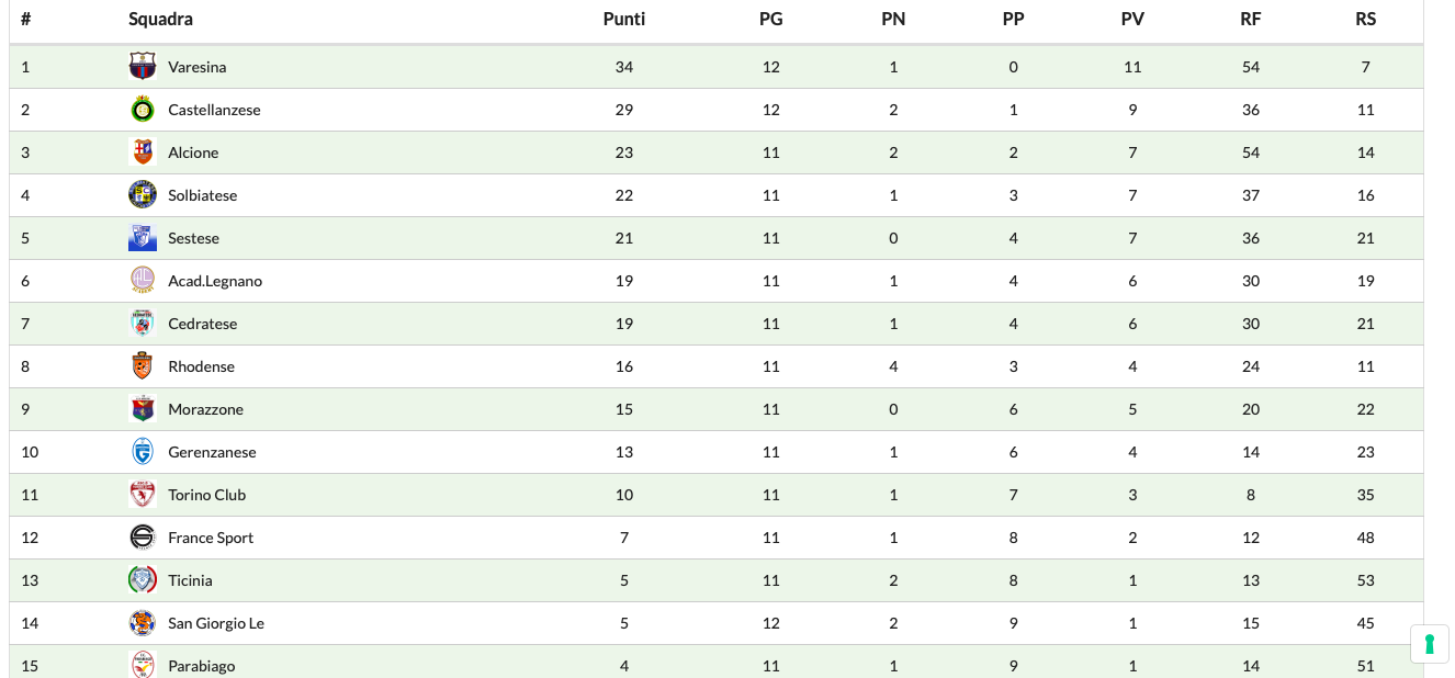 Ripescata poco prima dell’inizio del campionato, attualmente sarebbe salva. La Gerenzanese sta dimostrando di poter competere anche ai Regionali. La squadra di Lubrina è 10ª, a +3 sulla zona playout, ed è reduce dalla vittoria per 1-0 contro la Rhodense (successo che ha fatto seguito a quello conquistato nella giornata precedente, quando i varesotti si imposero 1-3 con la Ticinia). La Gerenzanese, prima della pausa, affronterà tre partite sulla carta molto impegnative (avversarie l’Academy Legnano, la Solbiatese e la Sestese) ma comunque proverà a dire la sua per cercare di concludere il 2022 in modo positivo.