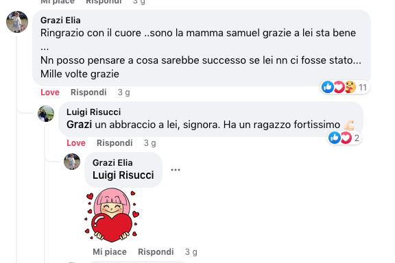 «Un abbraccio a lei signora. Ha un ragazzo fortissimo». Aveva risposto Luigi Risucci sulla nostra pagina Facebook ai ringraziamenti commossi di Graziella, mamma di Samuel Greco, il calciatore classe 2006 del Centrocampo a cui il fischietto della sezione di Nichelino domenica mattina ha salvato la vita dopo un scontro di gioco in una partita della Under 16 provinciale di Torino. (clicca QUI per leggere la notizia completa).