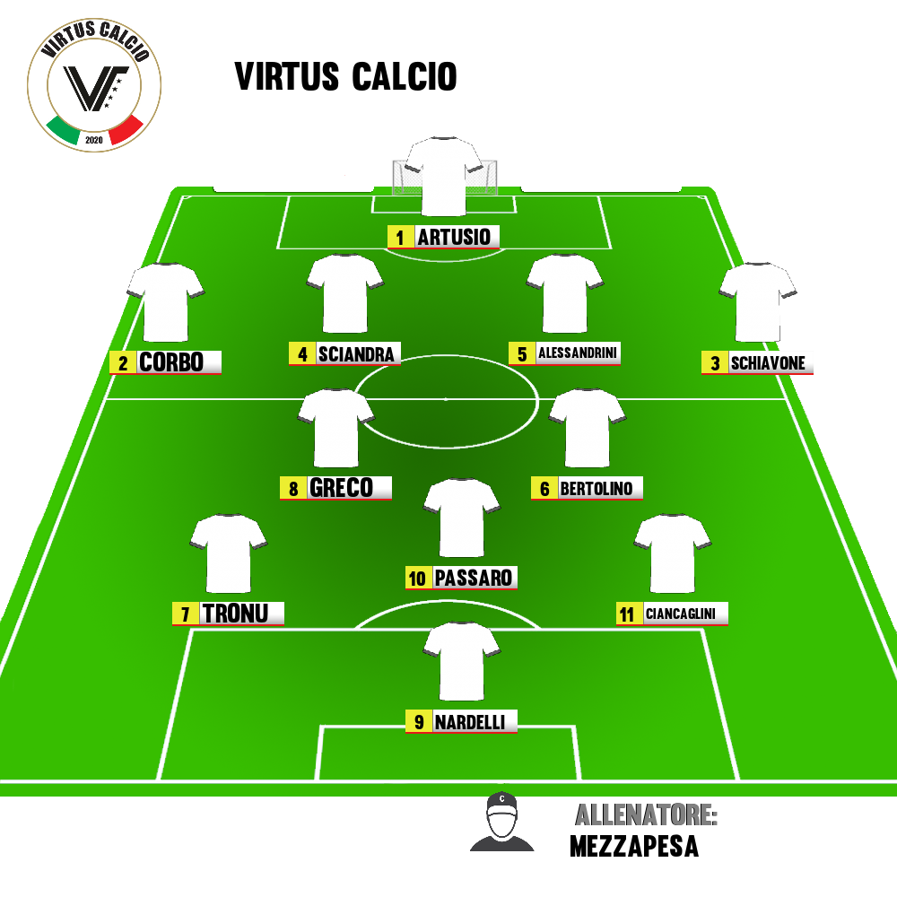 Come già anticipato in un vecchio numero del giornale, la Virtus Calcio 2007 affronterà un doppio campionato per la prossima stagione. I ragazzi di Marco Mezzapesa, infatti, giocheranno sia nella categoria Under 16 sia in quella Under 17 (contro i 2006) dei Campionati Provinciali. Dopo una sessione di mercato intensa, la rosa ha raggiunto un totale di 23 elementi che potranno permettere al tecnico Mezzapesa di schierare due diverse formazioni titolari dando la possibilità di giocare a tutti. Vediamo insieme la disposizione in campo di queste due ipotetiche formazioni entrambe schierate con il 4231.