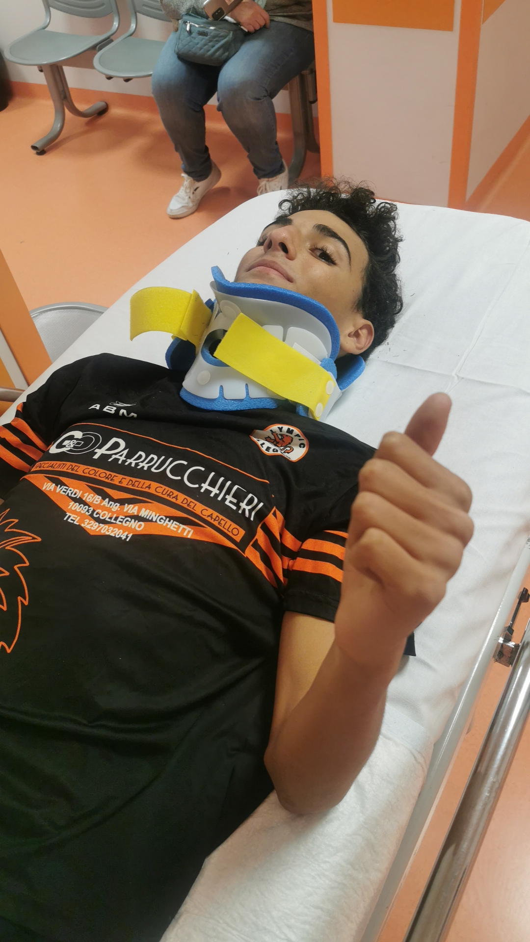 Dopo circa 20' dal fischio d'inizio infatti, sul risultato di 1-0 per i padroni di casa, il grande, e doppio, spavento: la gara infatti viene sospesa per un incidente di gioco occorso a due giocatori, sugli sviluppi di un'azione di calcio d'angolo si scontrano testa contro testa Amir Falchi dell'Olympic e Roberto Scolamiero del Caselette. Per il secondo un grande spavento che dura qualche secondo, con la ricaduta che porta momentaneamente allo stordimento ma che vede il ragazzo fortunatamente riprendere coscienza.
