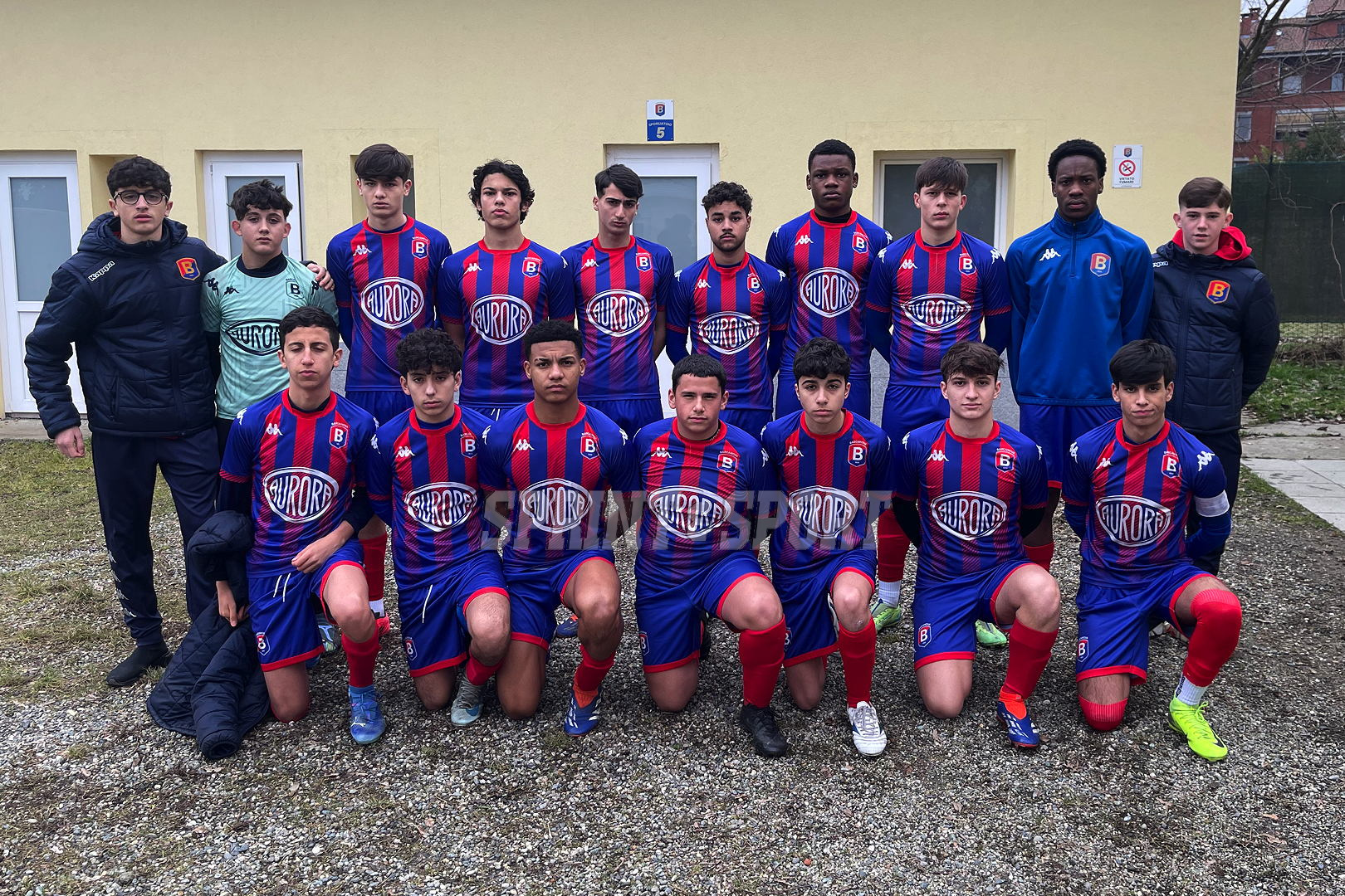 Colpaccio del Toro. Il Barcanova mette subito la partita in discesa con il gol al 7' di Matteo Toro: calcio d'angolo dalla sinistra battuto dal capitano Nicolò Corda, la palla passa sul secondo palo e al numero 6 blaugrana posizionato sul secondo basta appoggiarla in porta. Dopo il brutto infortunio di Matteo Gusella descritto in precedenza e i 30 minuti necessari alla ripresa del gioco, è ancora il Barcanova a rendersi pericoloso al 11' con Nicolò Corda che viene steso in area procurandosi la punizione dagli undici metri. Vlad Herghelegiu calcia il rigore alla propria sinistra, ma trova la grande risposta di Gabriele Frascaria che para e tiene in vita i suoi. Due minuti dopo il rigore ci prova Fabio "Bellingham" Kalala con un tiro potente in area di rigore dalla sinistra, ma trova ancora la risposta di Frascaria sul primo palo. Nei minuti successivi la partita si incattivisce e dopo diversi contrasti i ragazzi eccedono in alcune reazioni, ma vengono graziati dall'arbitro che estrae solo dei cartellini gialli: l'unico vero errore della direzione di Enis Vrana della sezione di Torino riguarda proprio la gestione dei cartellini, ci stava estrarre fin dal subito il rosso. Al 32' Kalala si ritrova solo davanti alla porta che viene ancora una volta protetta a meraviglia da Frascaria. La prima e unica occasione del primo tempo della Virtus arriva a pochi minuti dall'intervallo con Alessio Di Parigi che protegge alla grande palla in area e si gira in un fazzoletto calciando la palla in scivolata: sfortunato qua il numero 7 perché colpisce il palo interno, ma la sfera non entra.