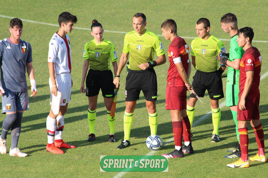 All-in Piccareta. Rivoluzione francese, rivoluzione russa, rivoluzione industriale. Tre dei cambiamenti più grossi della storia, ai quali vanno aggiunte le mosse di Piccareta a fine primo tempo. Un gol di vantaggio e un primo tempo senza correre particolari rischi non bastano al tecnico giallorosso, che nell'intervallo ne cambia tre. Sulla carta tutto normale, se non fosse che la sua Roma approccia la ripresa con in campo quattro attaccanti. Le ali sono Missori e Liburdi, Padula è confermato perno offensivo e Koffi (di ruolo attaccante) e Pisilli - pur giocando da mezzali - sono praticamente attaccanti aggiunti. Tale scelta lascia presagire due eventualità: nella prima la Roma, considerando la mole offensiva, prenderebbe il largo; nella seconda il Genoa potrebbe avere più chance di pareggiarla. Si verifica la prima, con la Roma che in poco più di quindici minuti va sul 3-0. Il raddoppio porta la firma di Padula e Liburdi. Il primo approfitta dell'ennesima ingenuità di Corelli e serve un assist al bacio per il secondo, che batte Ascioti con un gran destro (10'). Il tris arriva ancora dalla panchina con Leonardo D'Alessio. Servito in profondità da Padula (due assist per lui), trova uno splendido gol in diagonale (17'). Nei primi venti minuti il Genoa ci capisce ben poco, pur andando vicina al gol in tre occasioni. Se il tiro di Mele è controllato senza problemi da Baldi (21'), i due colpi di testa di Cagia sono le occasioni migliori per il Grifone. Al 16' il centrale raccoglie un assist di Accornero ma non trova la porta, cinque minuti dopo è fermato solo da un intervento clamoroso di Baldi. Nel frattempo la Roma cala, ed ecco che il Genoa torna a buoni ritmi. Lo fa soprattutto con Accornero e Palella: il primo disegna calcio, il secondo offre un pallone invitante a Bornosuzov che di testa la mette all'angolino (33').