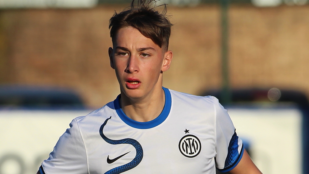 Pio Esposito con la maglia dell'Under 18 nerazzurra in occasione della sfida contro la Fiorentina