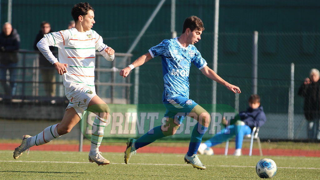 COMO-VENEZIA UNDER 17 • Francesco Mariano, numero 10 del Venezia, e Leonardo Piras, centrocampista del Como